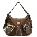 고급형--앞포켓 양포켓 패브릭 나염 프린팅 숄더백 FF807-2 진브라운 플라워(5003)