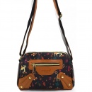 고급형--여성용 패브릭 나염 3단지퍼 크로스백 JJ207-2 블랙 동물 (2005)
