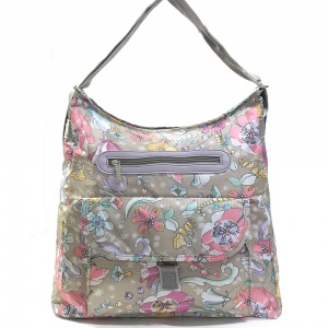 고급형--앞포켓 양포켓 패브릭 나염 프린팅 숄더백 FF807-4 연브라운 플라워(5003)