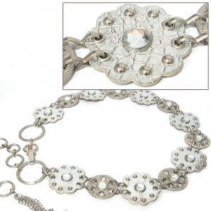 [국내생산] 여성용 꽃큐빅 패션 골반 체인벨트 BW106-16